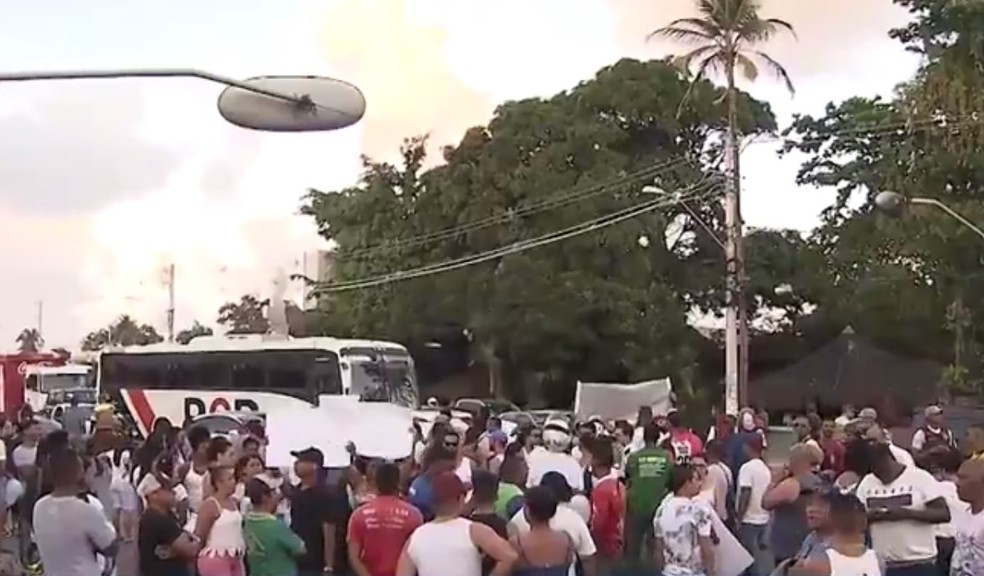 O grupo protestou contra uma briga de trânsito que acabou com um motociclista baleado, em Lauro de Freitas, no último sábado (22). A família da vítima acusa um policial militar de ter cometido o crime. O caso foi registrado na Corregedoria da corporação, que vai investigar a situação. O envolvimento de um PM ainda não foi confirmado.